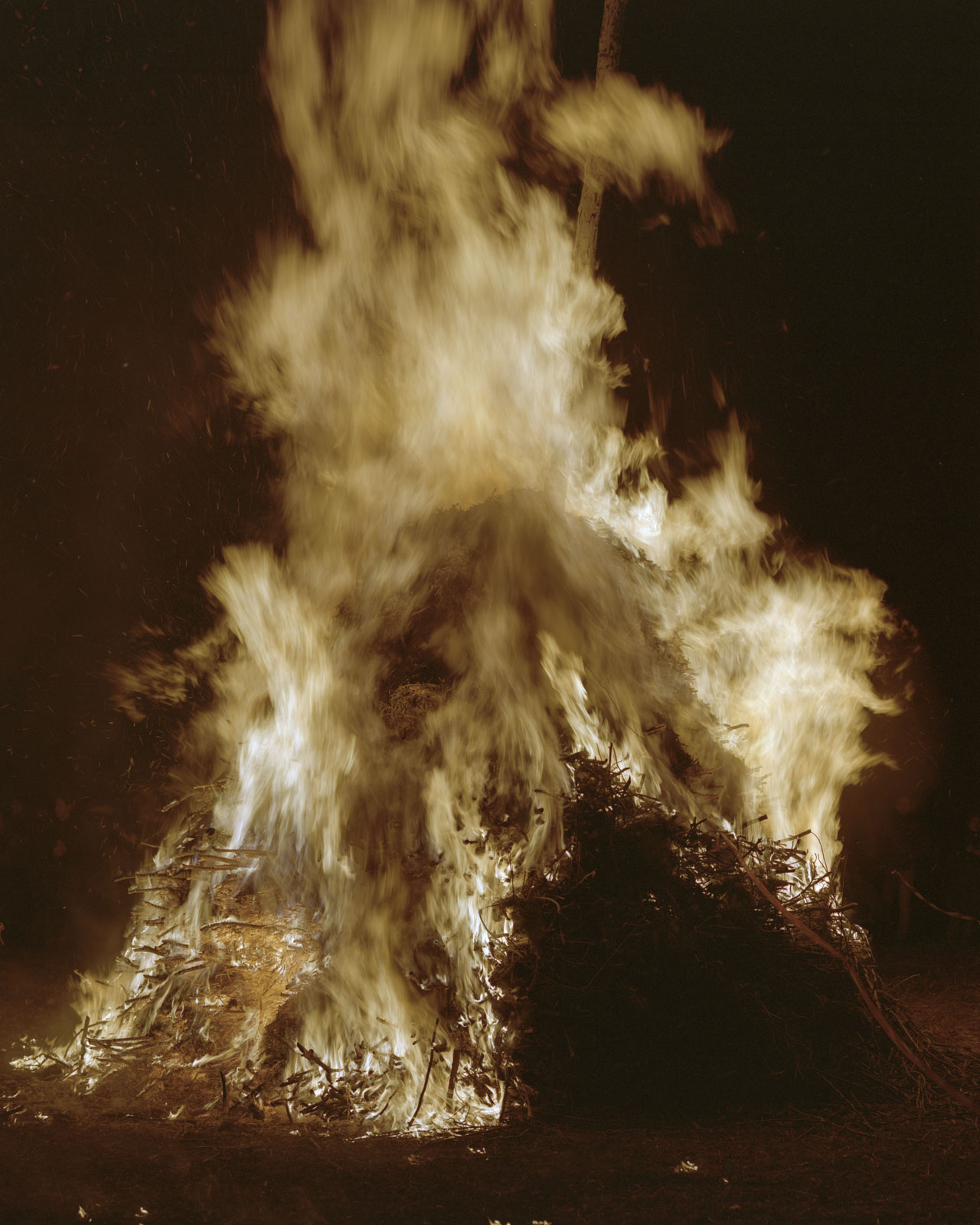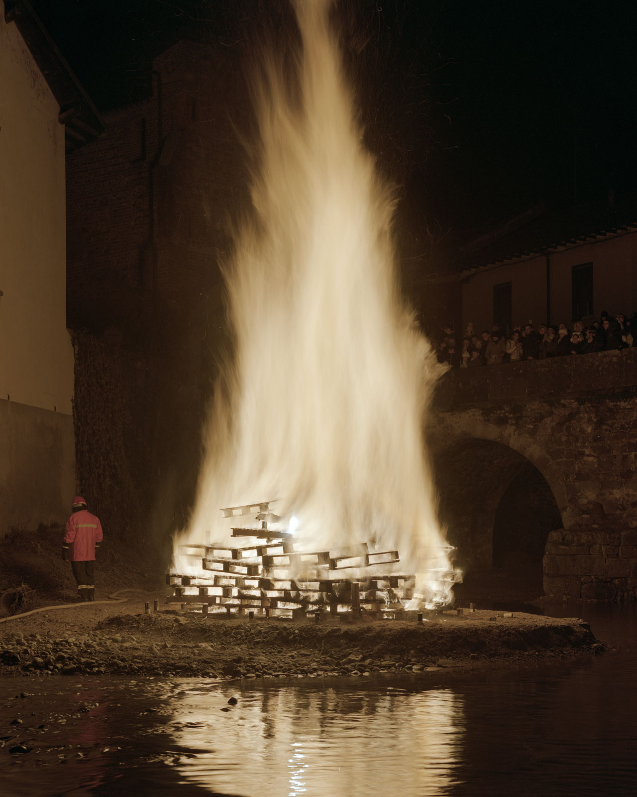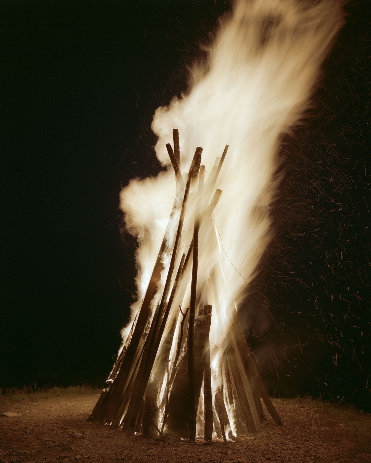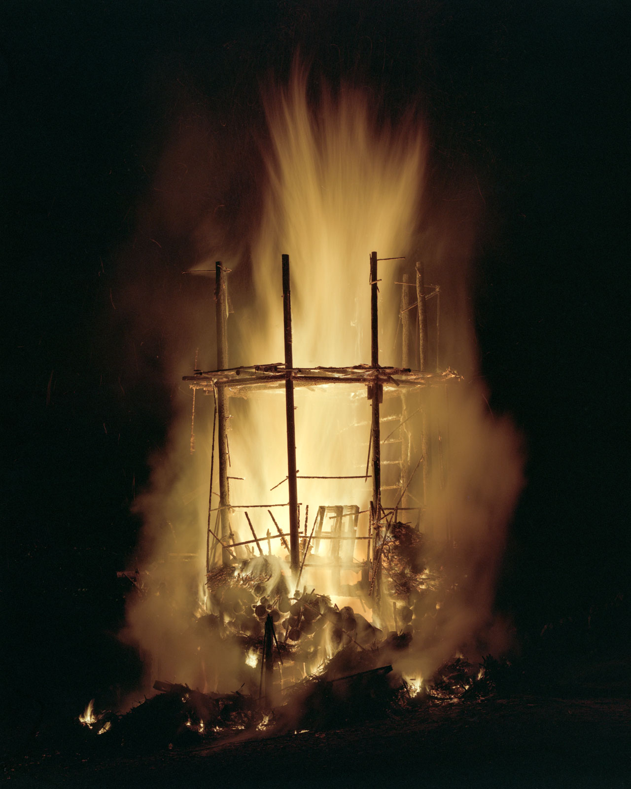 I “Fuochi” collettivi, le grandi pire che le comunità costruiscono e distruggono nei momenti simbolici dell’anno, nei solstizi e negli equinozi, nei carnevali e nei cambi di stagione, sono al contempo architettura, performance e cerimonia rituale.