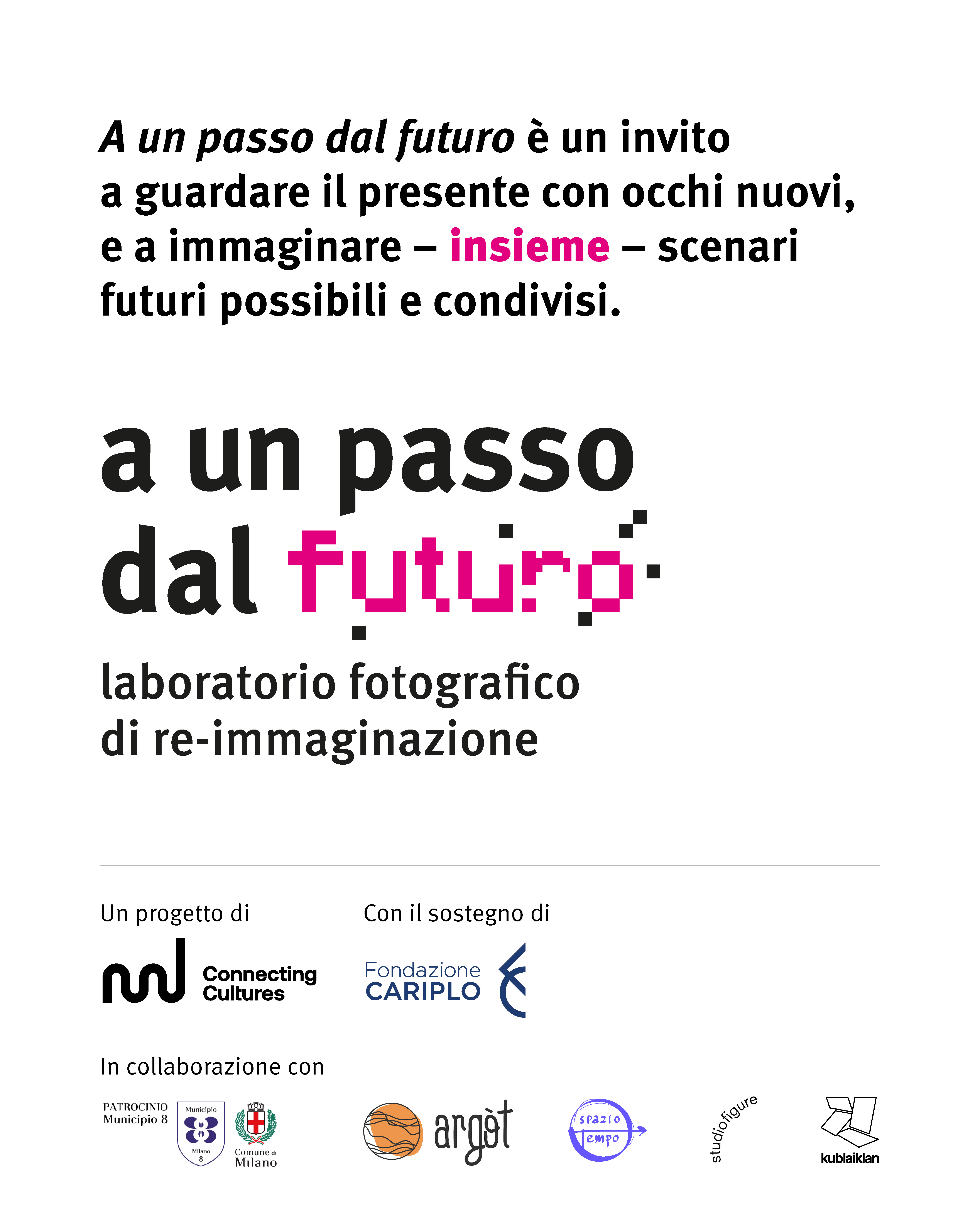 Da ottobre saremo impegnati con “A un passo dal futuro”, un percorso di re-immaginazione del quartiere Gallaratese a Milano, condiviso con 15 giovani creativi e con un gruppo di lavoro multi-disciplinare e multi-bello: Carla Sedini︎ e Kublaiklan︎ condivideranno i loro saperi nella ricerca e nella formalizzazione delle opere che realizzeremo, le associazioni Argòt︎ e Spaziotempo︎ ci ospiteranno e ci aiuteranno a interagire col quartiere e con la comunità in modo rispettoso e attento.