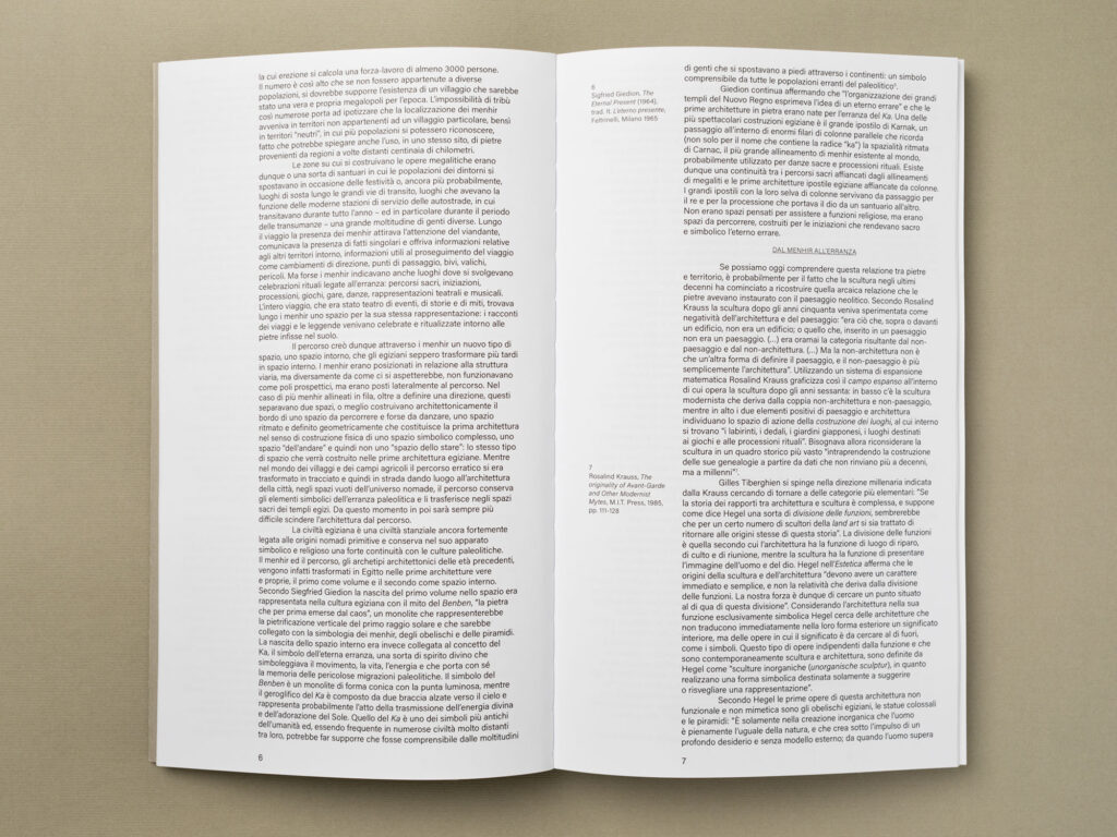 Rispecchiandosi nella sagoma lontana di un menhir, il viandante misura i passi necessari per raggiungerlo: definisce lo spazio e il tempo e così capisce il paesaggio che attraversa.